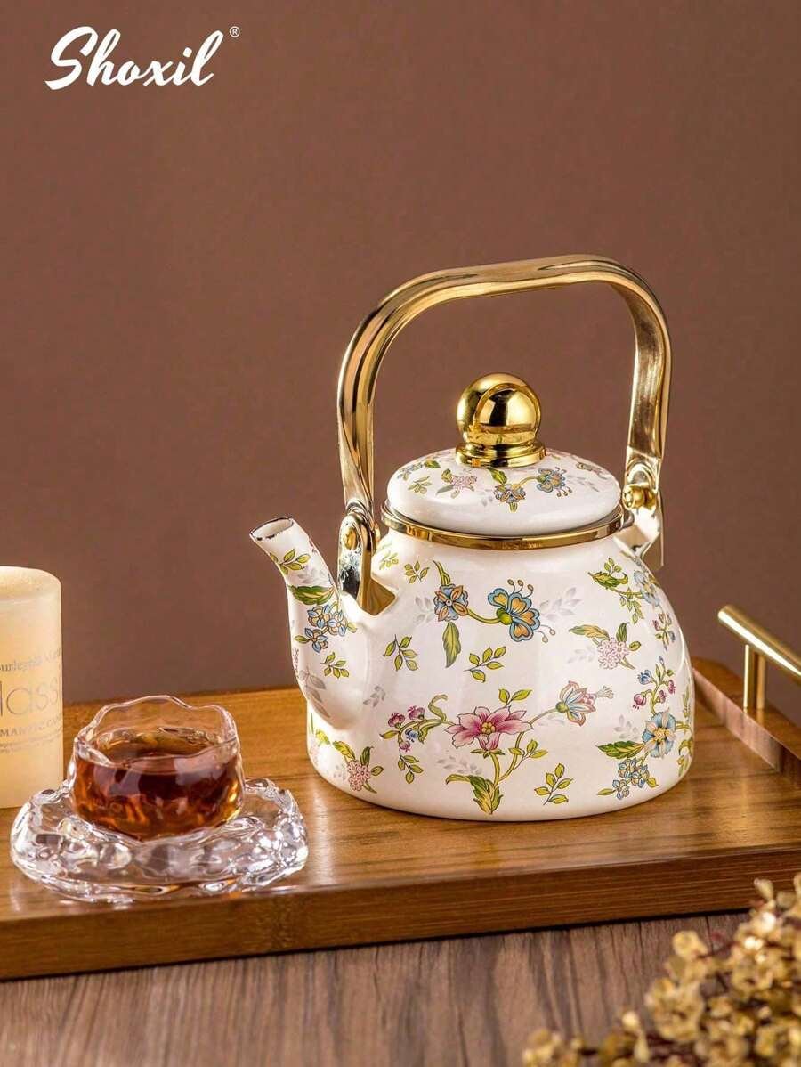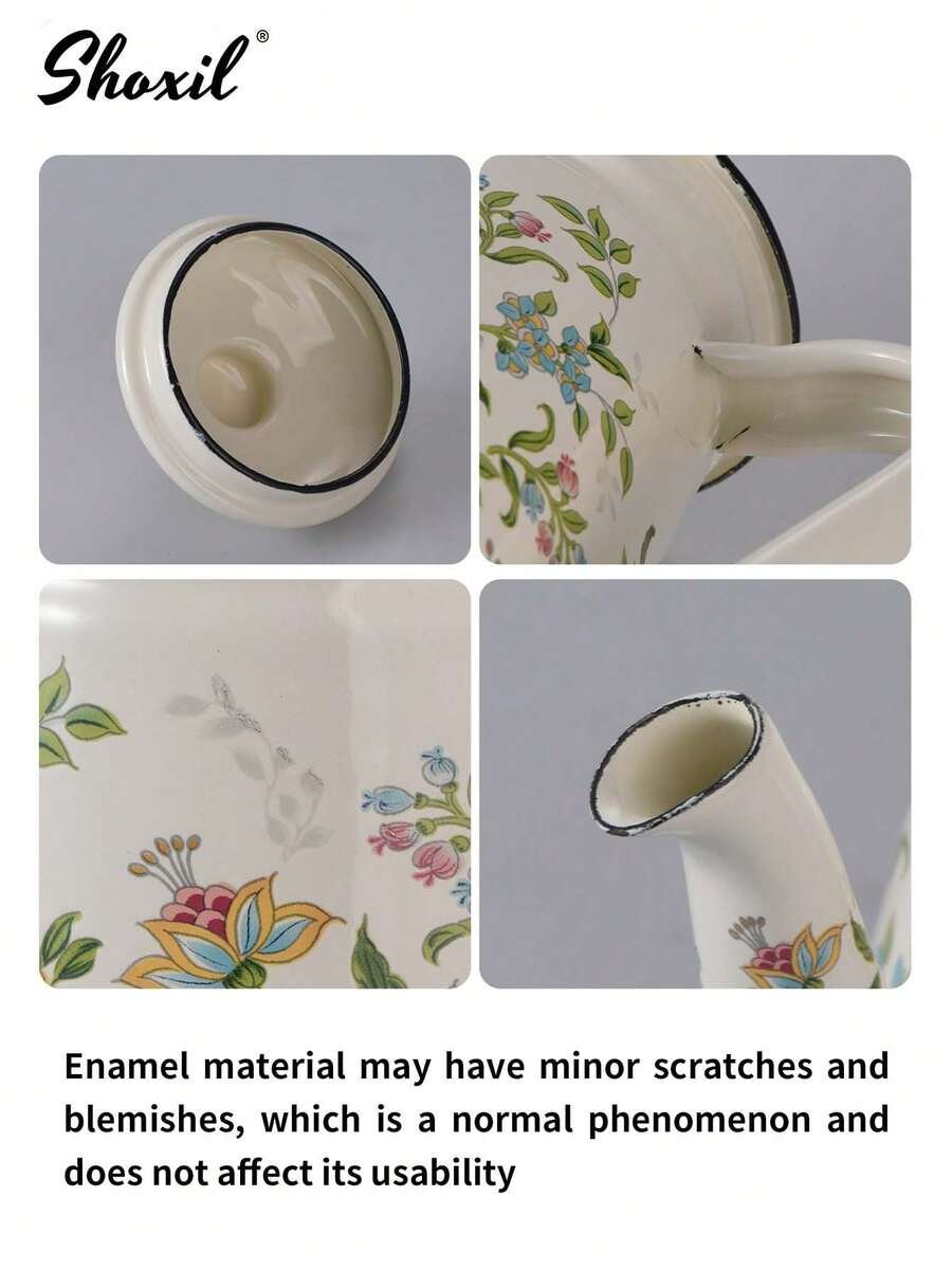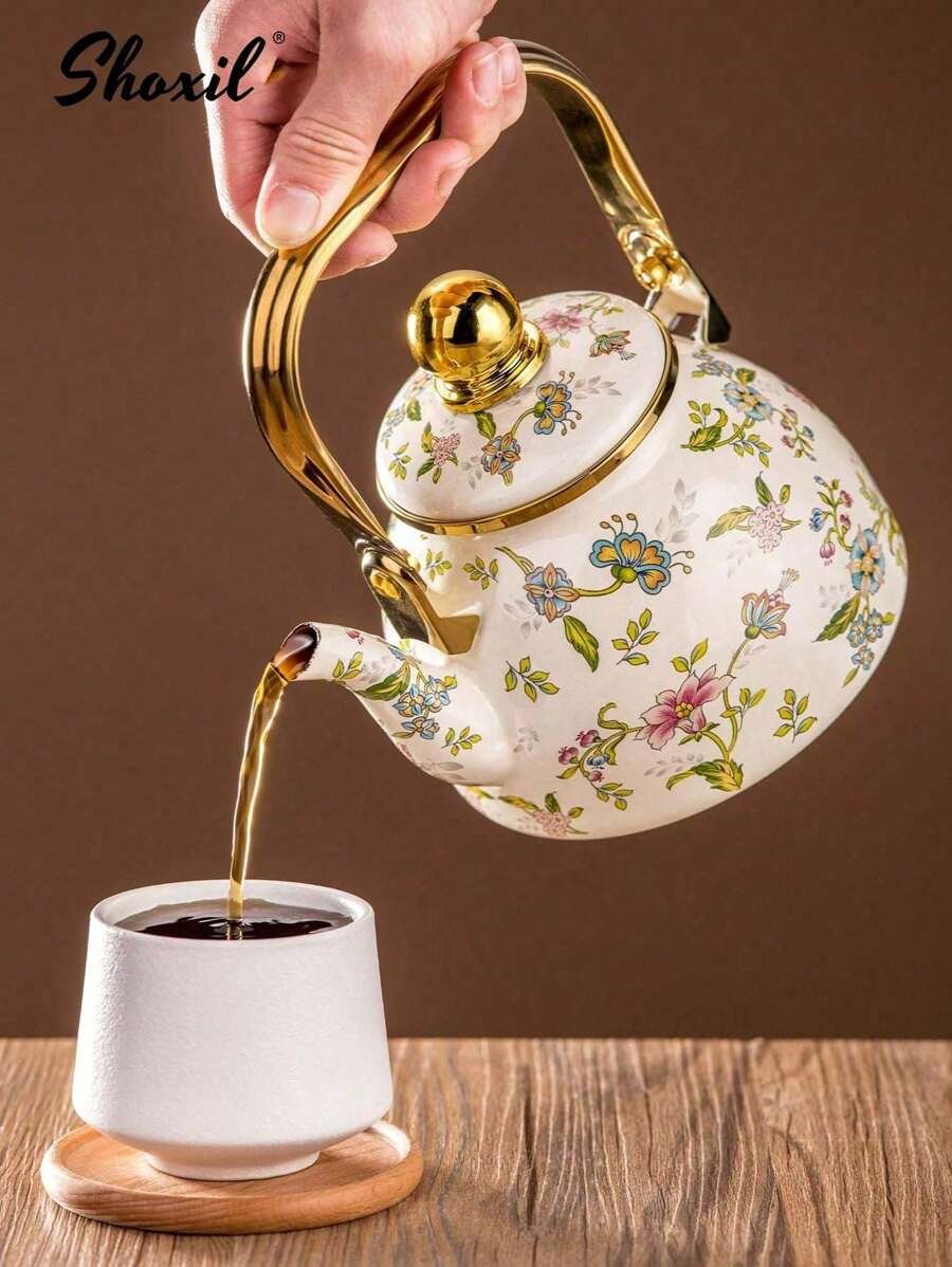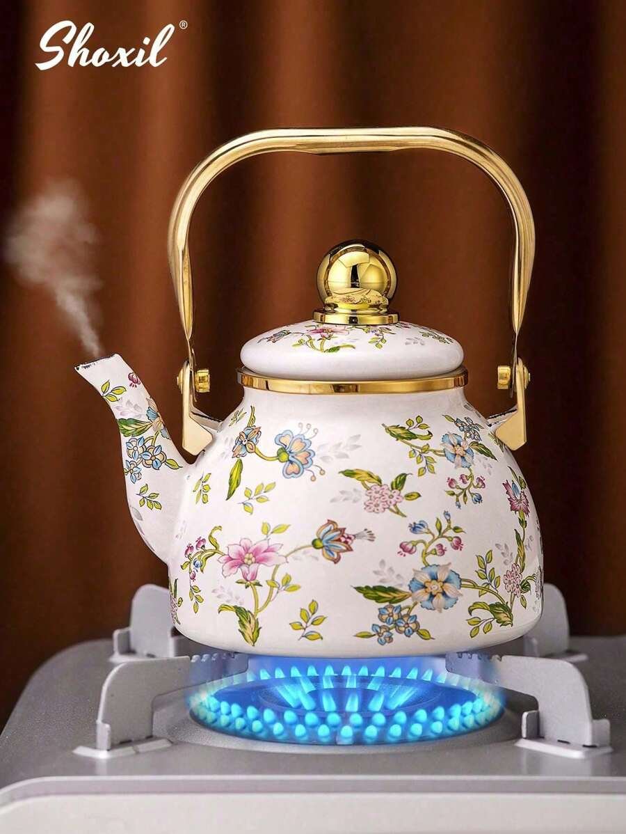 استمتع بتجربة تحضير فريدة مع غلاية قهوة وشاي Shoxil المطلية بالمينا والمزخرفة بنقوش زهرية أنيقة تضيف لمسة فخمة إلى مطبخك ، تجمع هذه الغلاية بين الجمال الكلاسيكي والمتانة العالية لتمنحك أداءً عمليًا يدوم طويلًا ، تتوفر بسعتين مريحتين 1.2 لتر و 1.5لتر لتناسب احتياجات الاستخدام اليومي سواء لتحضير القهوة، أو الشاي، أو أي مشروب ساخن آخر