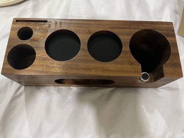 ارتقِ بتجربة إعداد القهوة إلى مستوى احترافي مع قاعدة خشبية للقهوة، تم تصميمها لتوفر لك مساحة منظمة لتثبيت أدواتك أثناء التحضير، مما يمنع انزلاق الأدوات أو تحركها، ويمنحك راحة واستقرارًا تامًا أثناء العمل