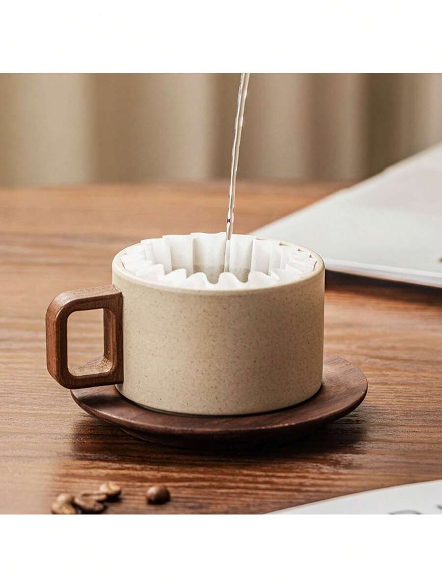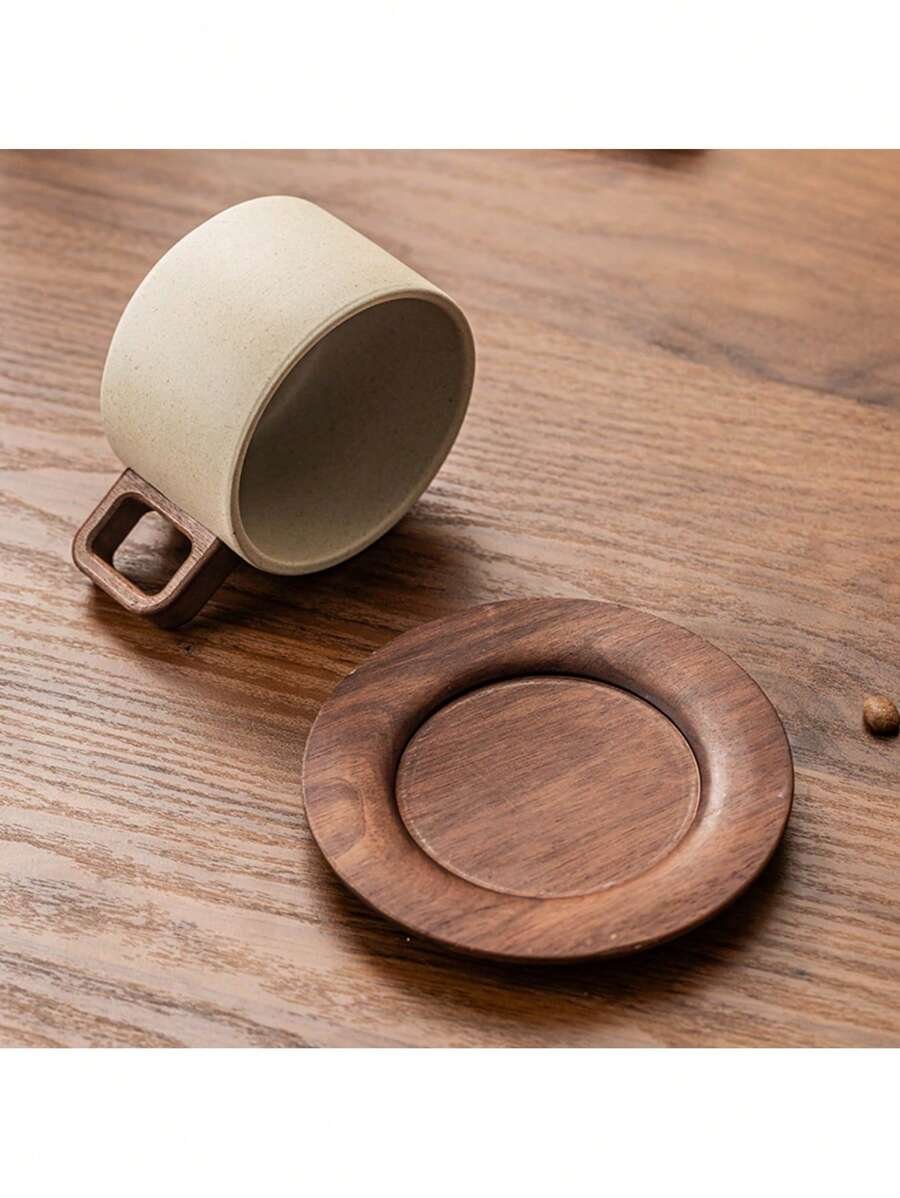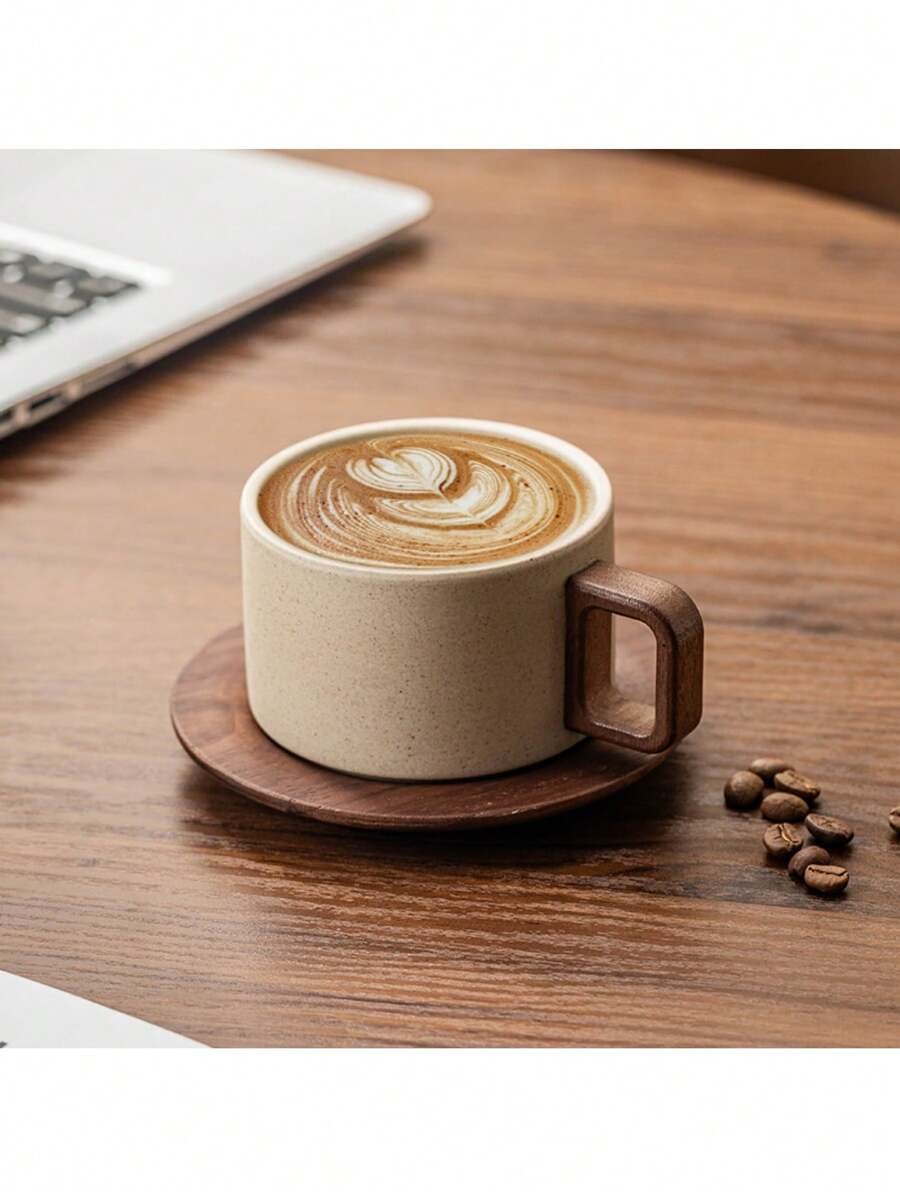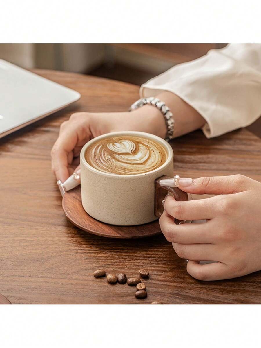 طقم فنجان قهوة من الفخار سعة 250 مل + طقم فنجان وصحن خشبي |