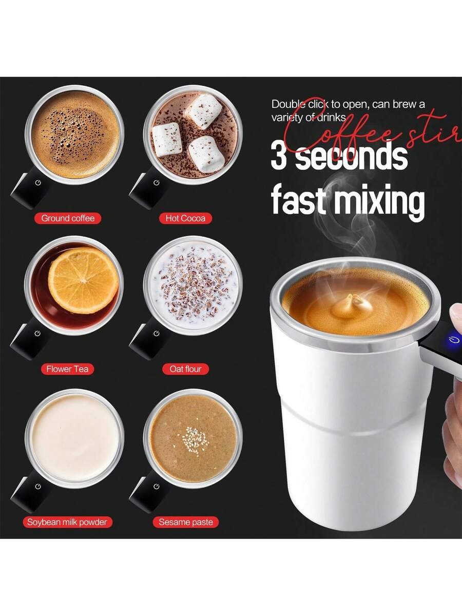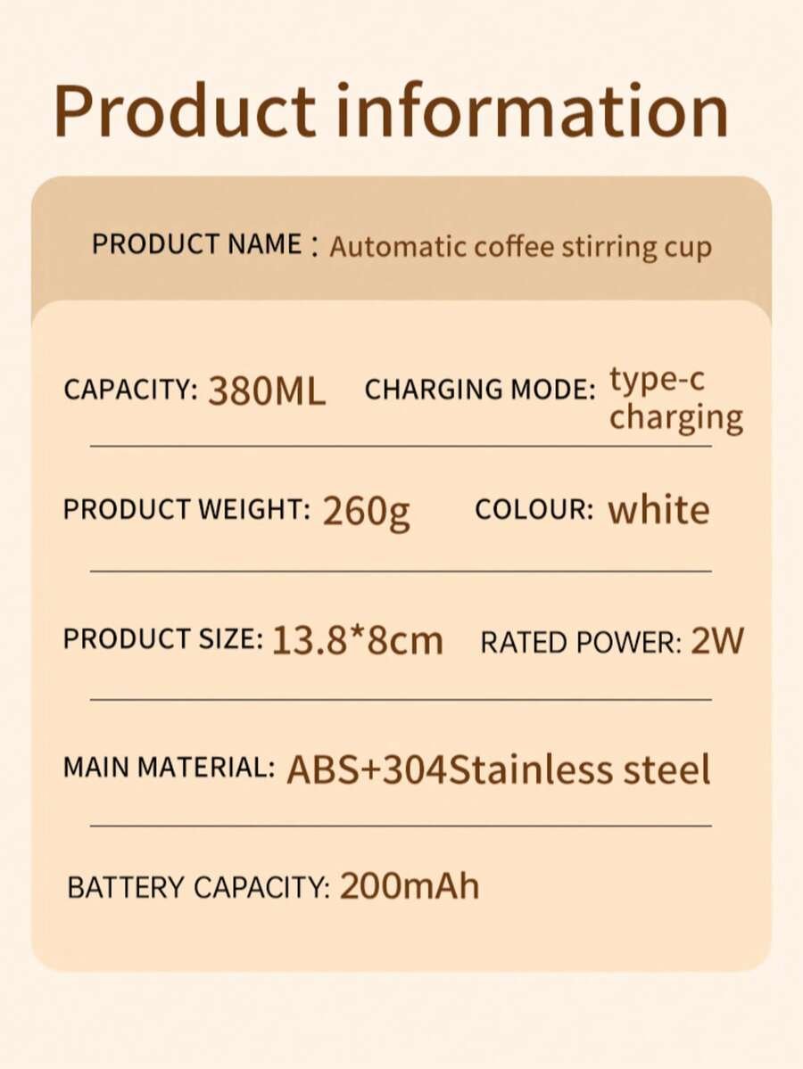 كوب قهوة كهربائي يتميز بسعة 380 مل مناسبة لتحضير كمية كافية من القهوة أو المشروبات الأخرى في أي وقت. كما يمتاز بتصميم ذكي يتيح خلط المشروبات بشكل متجانس دون الحاجة إلى مجهود يدوي، ما يوفر الوقت ويضمن الحصول على مذاق مثالي في كل مرة
